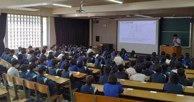 その後八戸工業大学に移動して、最初に大学での学びに関する講義を受け、昼食(弁当持参)の後に7グループに分かれて希望する模擬講義を受講。最後に全員で「理系進路のススメ」についての講義を受けました。