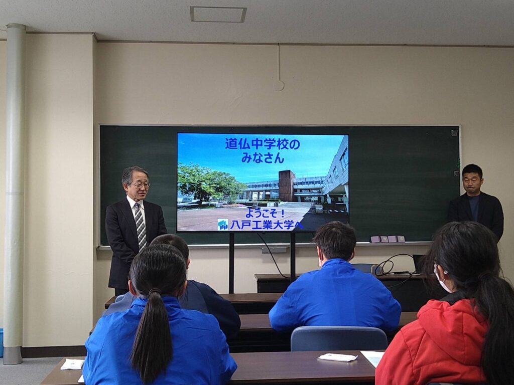 写真は、三浦建設工業、八戸キャニオン、八戸工業大学学長挨拶、八戸工業大学模擬講義です。