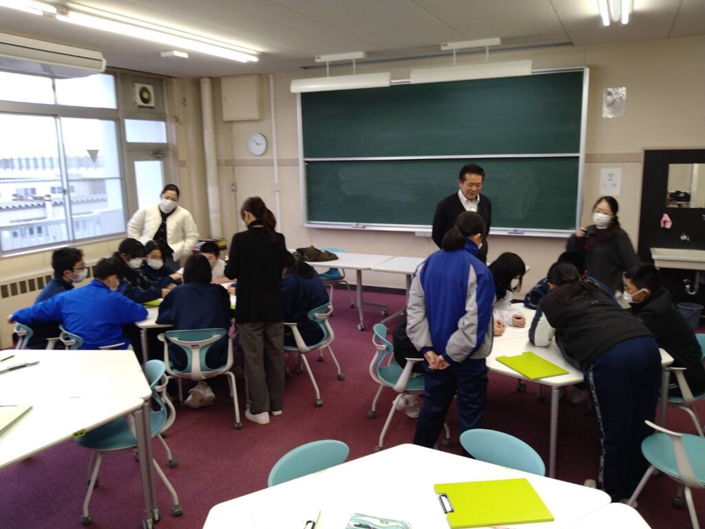 冷たい風が吹く1日でしたが、1年生の生徒14人が元気に地域の産業と大学を見学しました。午前中は、車窓から八戸第1臨海工業団地や八戸飼料穀物コンビナート、このための港や道路などを見学したあと、三浦建設工業を訪問、工場見学を行いました。その後、八戸工業大学に移動し、大学での学びについて説明を受けた後、学食で昼食を摂り、午後は2科目の模擬講義を受講しました。